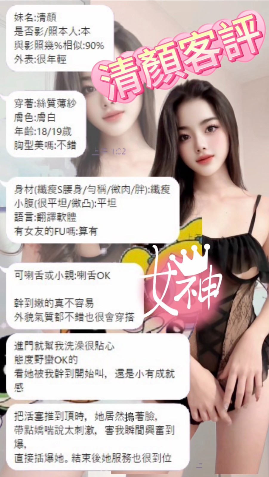 🔥特色:🔸膚白🔸無妊娠紋🔸剃毛🔸無牙套