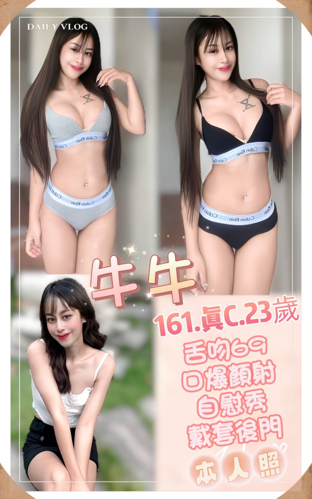 無套吹/戴套做/前後澡/品鮑/69/奶炮/胸推/按摩/親嘴(妹妹視現場感覺而定)
