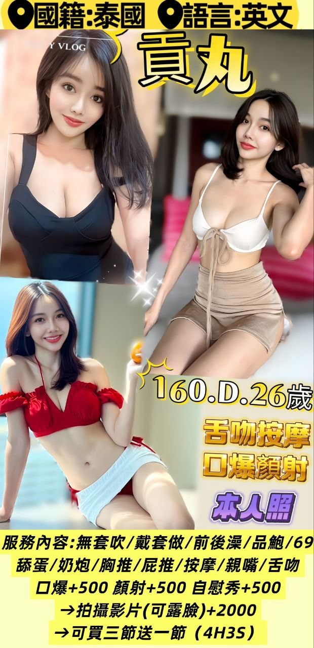 無套吹/戴套做/前後澡/舔蛋/奶炮/胸推/屁推/按摩/親嘴/舌吻(視現場感覺而定)