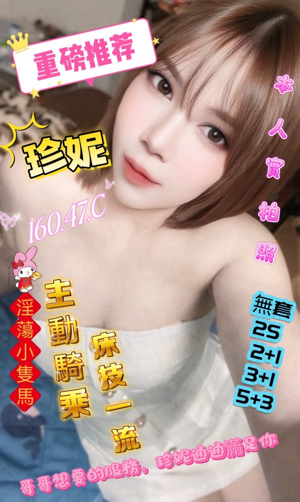 無套吹/共浴/深喉嚨/親嘴/舌吻/品鮑/69/按摩/奶炮/舔蛋/冰火/胸推/屁推/胸摩臉/奶洗澡/艷舞/角色扮演/情趣用品/絲襪(客自備)